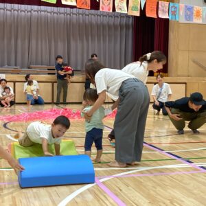 親子運動会 2025年10月21日 先日、18日(土)に近隣の小学校の体育館を借りて親子運動会を行いました。 個人競技、親子競技、触れあいあそび、表現、と普段のあそびのなかで出来るようになったこと、大好きなあそびを親子で一緒に楽しみました。 あそびの中でたくさんのできることが増え、成長を感じてもらえる機会となっていれば嬉しいです🎵 今年度はマイ保育園ひろばのお友だちも3組参加してくださり、活気あふれる運動会となりました✨