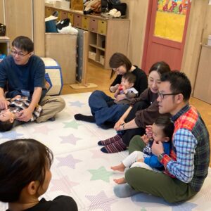 保育園のこども達からも人気な歌を一緒に歌ってこどもとの触れ合う時間を楽しんでもらいました。