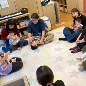 制作の次は、わらべうたを使ったふれあいあそびをしました。