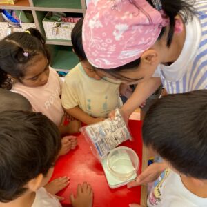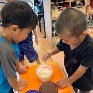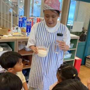 「塩麹って何?」こどもたちから疑問の声があがり、栄養士さんに質問することにしました。