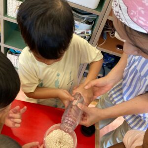 そんなこどもたちの表情を見た栄養士さんが「塩麹は作れるんだよ」教えてくれたので、みんなで作ってみることにしました。